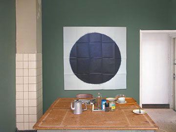 Kadervuil, kan je zien als het negatief van de blauwe bal. De mythe van het gat leert ons dat ruimte zonder grenzen leegte is..