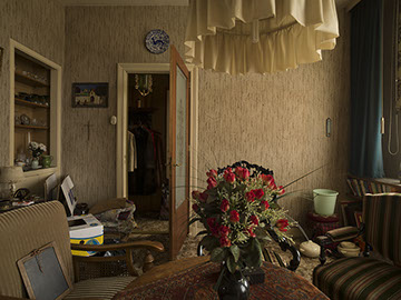 Interieuropnamen van diverse leegstaande huizen waarvan de bewoners naar een verzorgingshuis zijn vertrokken en het moment van verkoop nog even uitgesteld wordt.