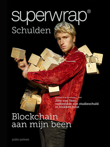 Videostills van diverse projecten, maar vooral het verhaal van de Superwrap Schulden. Hoe kan een student muziek technologie daar iets aan bij dragen, nou zo dus: Blockchain aan mijn been.