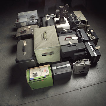 De start van de rondleiding MAn is in de zijruimte, de MAn experience. Dat is dan chronologisch niet helemaal het begin maar wij hebben veel met verschillende vormen van diaprojectie gewerkt en willen graag iets van de apparatuur en de sfeer van zoiets laten zien.